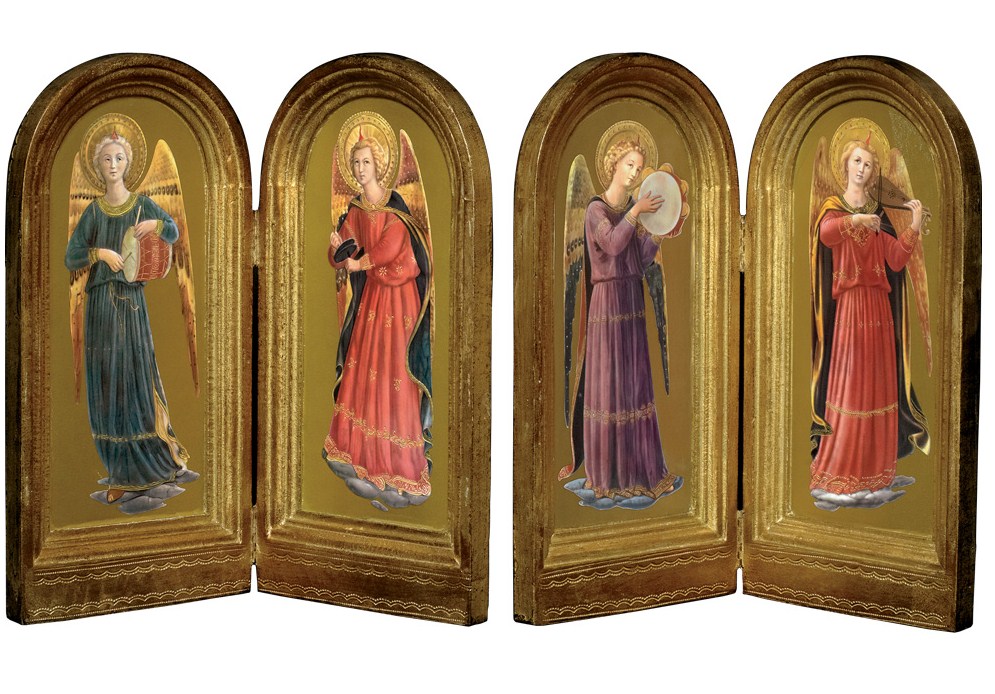 In 1439 Fra Angelico completed one of his most famous works, the San Marco Altarpiece at Florence, which was unusual for its time. Images of the enthroned Madonna and Child surrounded by saints were common, but they usually depicted a setting that was clearly heaven-like, in which saints and angels hovered about as divine presences rather than people. But in this instance, the saints stand squarely within the space, grouped in a natural way as if they were able to converse about the shared experience of witnessing the Virgin in glory.