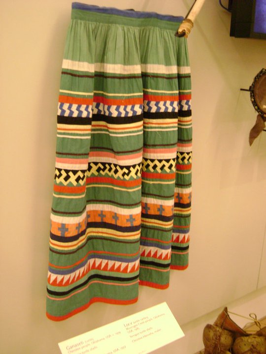 Native American pieced skirt from Oklahoma. Reminds me of Seminole piecework.