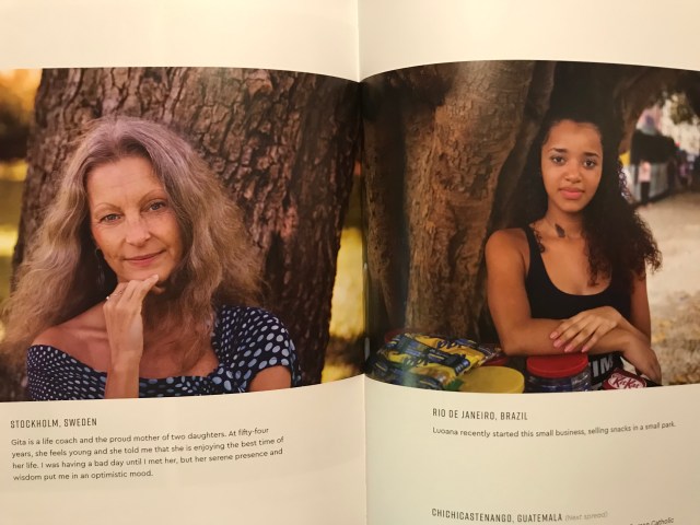 The layouts are interesting as well, with satisfying juxtapositions. Some photos are accompanied with a story about the woman pictured; others with just the location.
