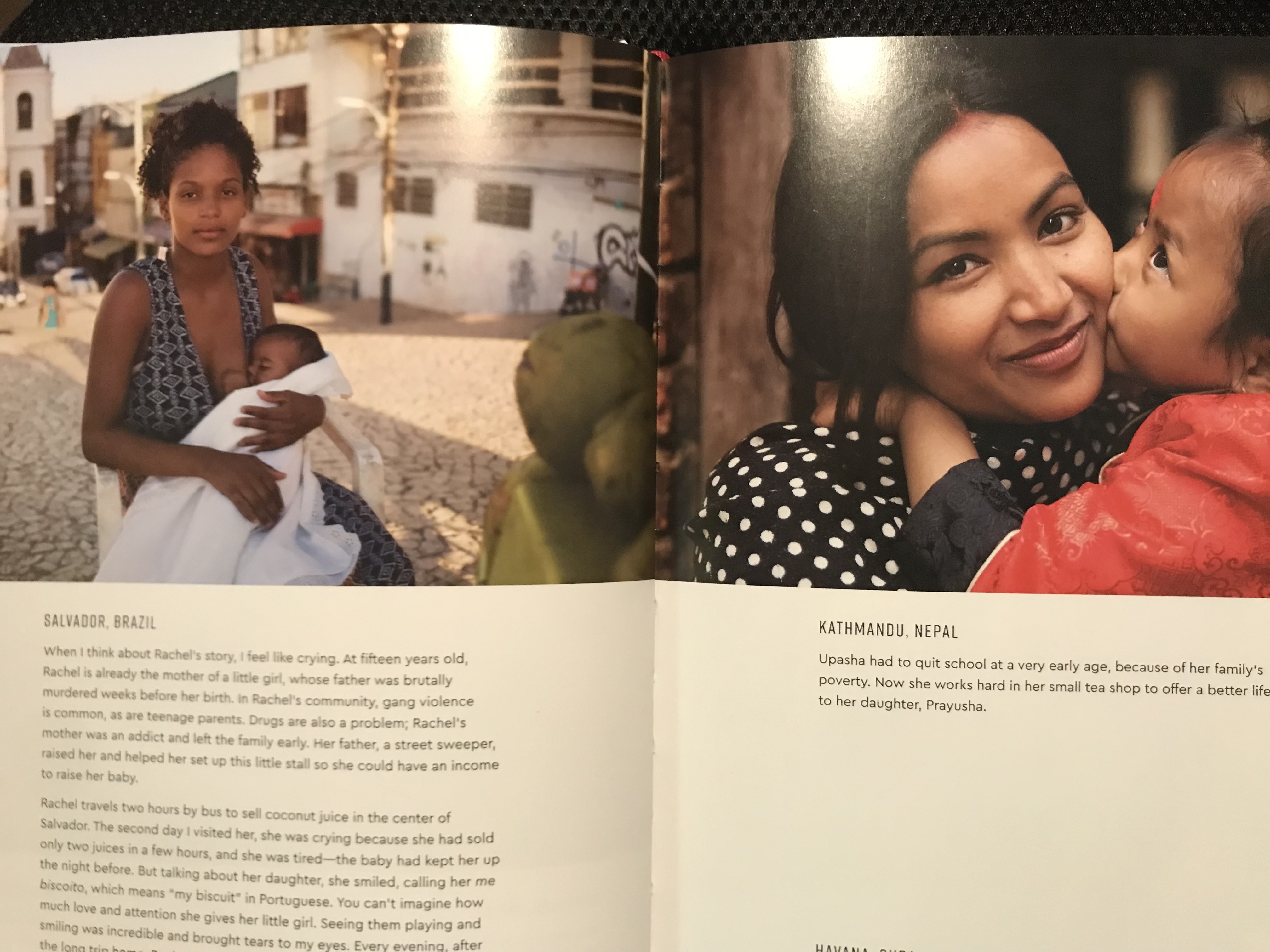 The layouts are interesting as well, with satisfying juxtapositions. Some photos are accompanied with a story about the woman pictured; others with just the location.