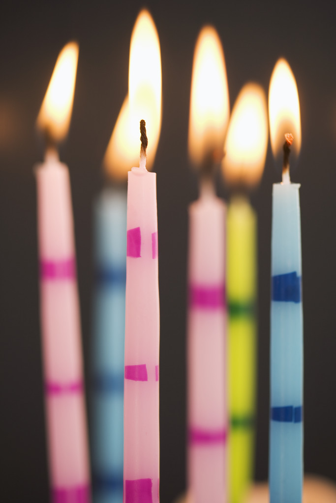 Six Lit Birthday Candles — Image by © Royalty-Free/Corbis